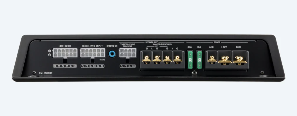 With 6 channels of class-D amplification, the XM-GS6DSP drives a variety of speaker configurations. Fill your car with 45Wx4 (4Ω) of clean and dynamic sound plus 600W (2Ω bridged) of subwoofer power. All from a compact amp, with minimal interference for audio that’s crystal clear, even at its loudest.