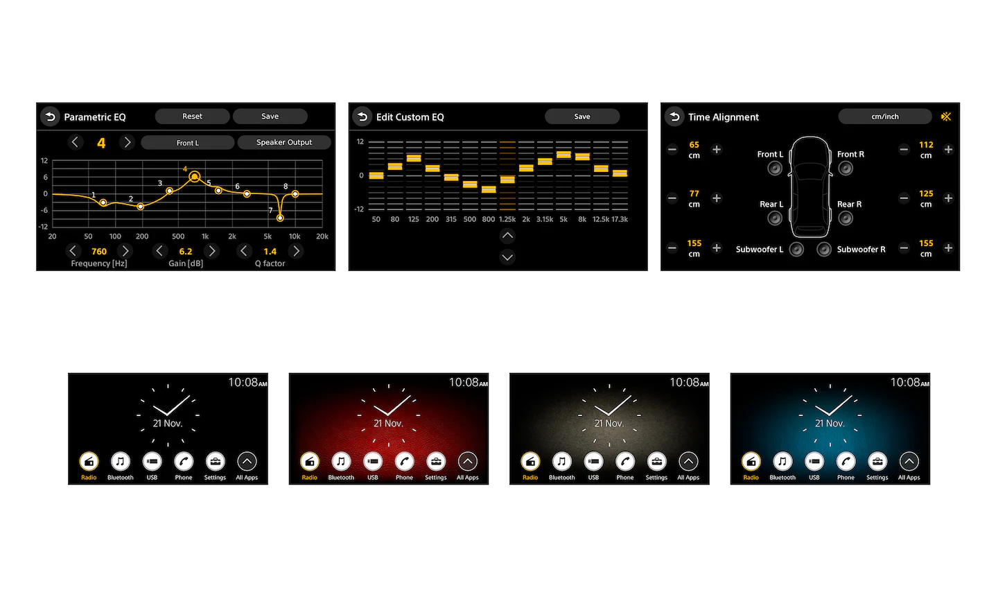 The high grade 192 kHz / 24 bit DSP offers pristine sound processing and time alignment - down to a remarkable 1 cm for each of the 6 addressable channels (4 speakers + 2 subwoofers via pre-out). A 14-band EQ lets you adjust the overall sound to your music or taste, and each of the 6 channels features independent 8-band parametric EQ to get optimum performance across different speaker configurations. Together with the 3-zone crossover, you can dial in the perfect match of front, rear and subwoofers.